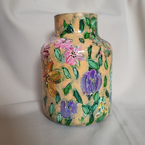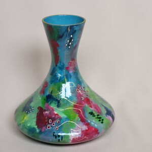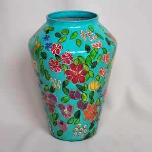 Handbeschilderde originele vazen. De vazen worden afgelakt met een waterbestendige hoogglanslak. Door ze af te lakken met een waterbestendige hoogglanslak krijgen ze een luxe uitstraling en kunnen gebruikt worden als bloemenvaas. Uiteraard kan je ze gewoon afwassen met een mild schoonmaakmiddel.